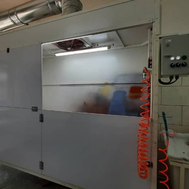 وان هیدروگرافیک، وان شستشو، اتاق رنگ، ۳ پیستوله HVLP، میز برش فیلم، فیلم هیدروگرافی، انواع رنگ و پرایمر، کیلر ایرانی و خارجی، مخزن ۴۰۰لیتری آب، آبگرمکن بوتان، قفسه و میز، مبل راحتی و دستگاه پولیش و ابزارهای لازم.