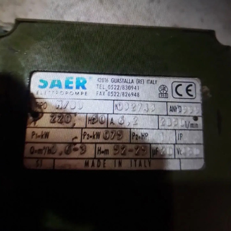 پمپ آب saerایتالیا به همراه ست کنترل ولوازم جانبی آماده نصب ،کم کارکرد ۵ساله توانباری نگاه داشتم ،اصلا قابل قیاس با پمپ آبهای بازار نیست ،سیم پیچ فابریک ،بدون تعمیر ،بدون جابجایی لوازم ،حتی خازن ایتالیایی،اهل فن میشناسنش چه هیولاییه
